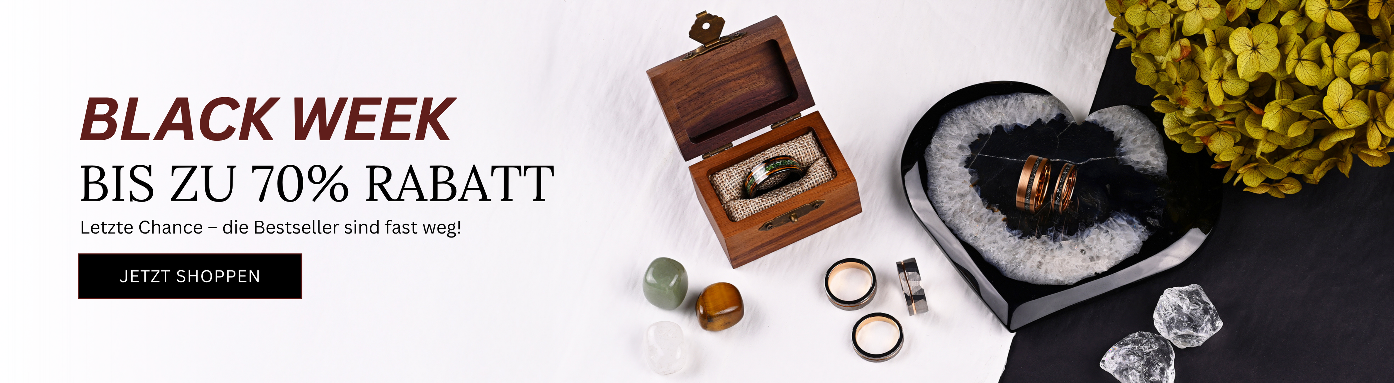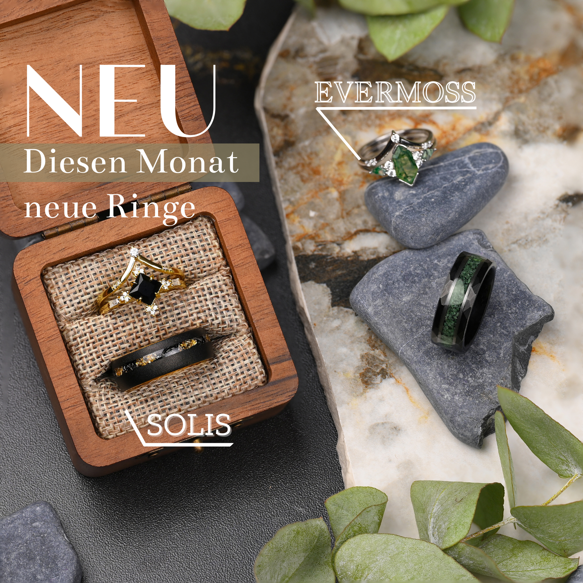 Jeder Ring wird in einer eleganten Ringbox aus antikem Holz geliefert. Werten Sie Ihren Ringkauf mit unserer kostenlosen Ringbox auf, die Sie als Geschenk erhalten – ein Hauch zeitloser Eleganz mit jeder Bestellung.