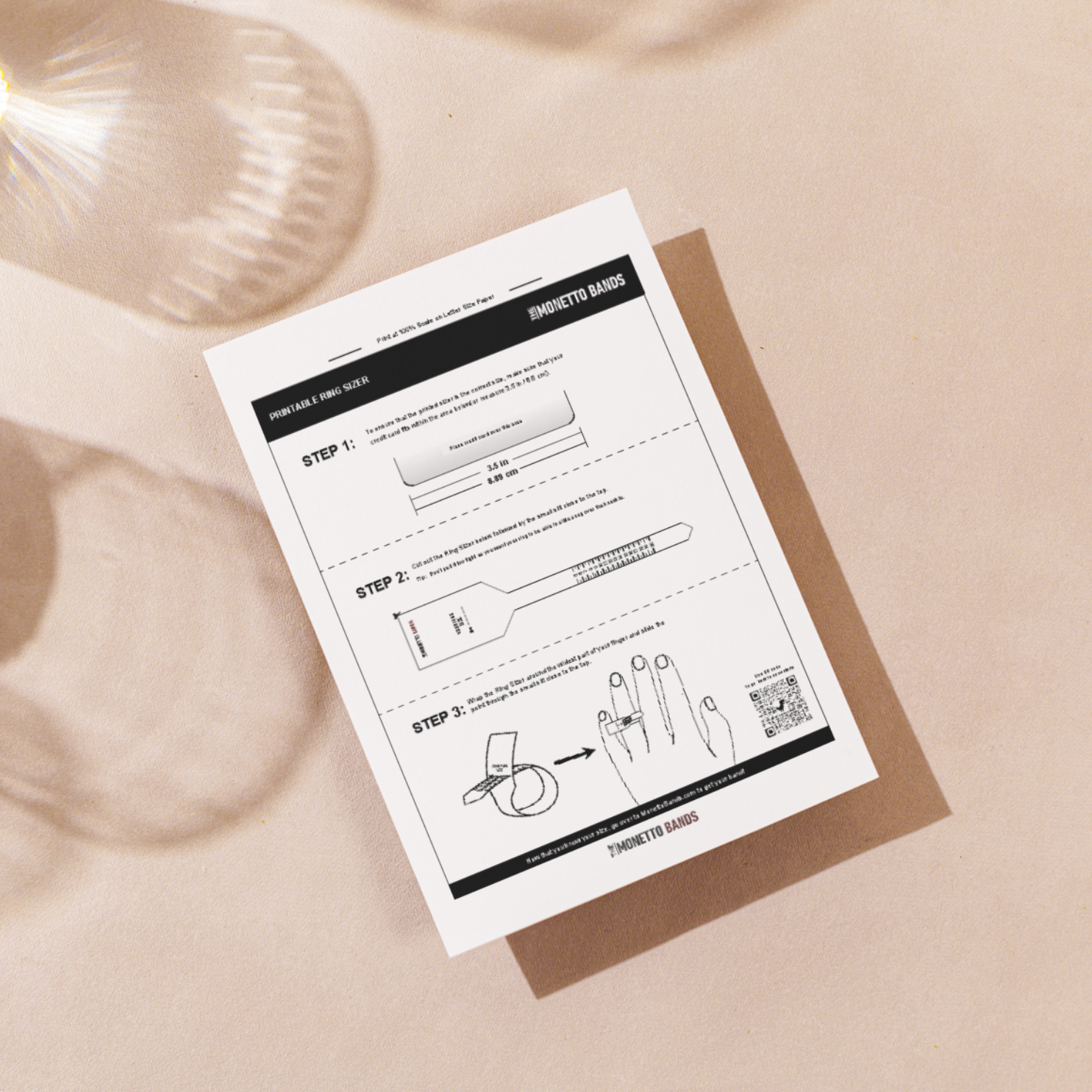 Stellen Sie sicher, dass Ihr Ring perfekt sitzt, mit unserem Ringgrößenmesser - einem einfachen, aber unverzichtbaren Werkzeug, das Ihnen hilft, Ihre ideale Ringgröße mit Leichtigkeit und Präzision zu finden.