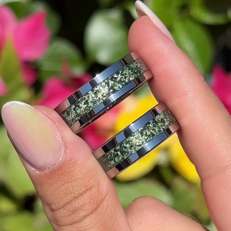 - Material : Wolfram (silber plattiert) und Grünes Moosachat-Inlay