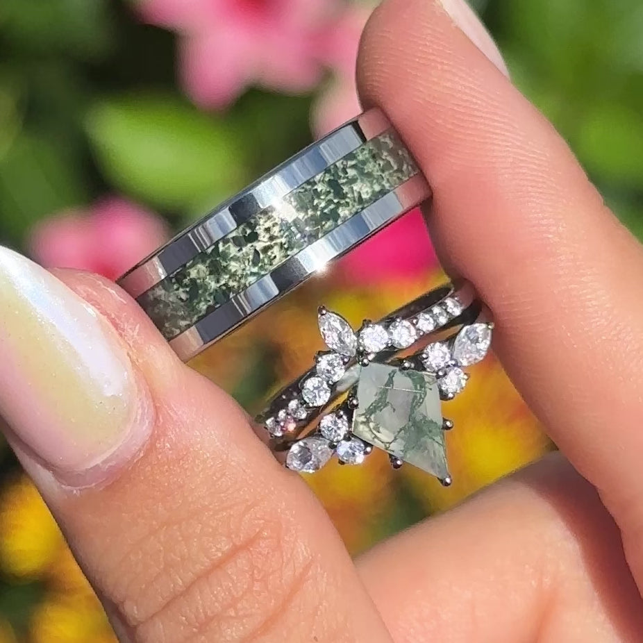 Achat - Ringe Set für Paare - ist eine harmonische Mischung aus natürlicher Schönheit und zeitloser Eleganz. Dieses mit viel Liebe zum Detail gefertigte Set ist mehr als nur ein Paar Ringe – es ist eine Hommage an die einzigartige Verbindung zwischen zwei Menschen.