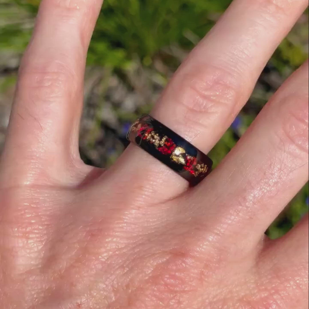 - Material : Wolfram, Roter Opal und Blattgold Ringset