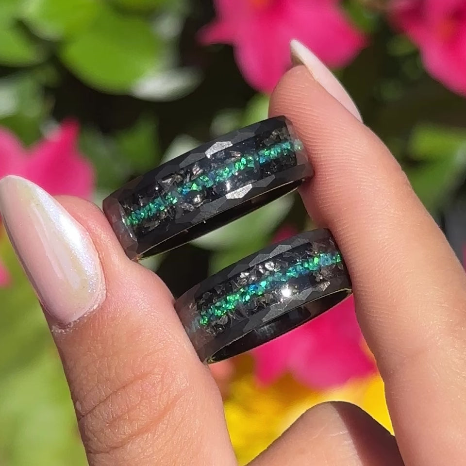 Aurora-Paarring-Set – eine himmlische Reise der Liebe und Einheit. Dieses mit Präzision und Leidenschaft gefertigte Set ist mehr als nur ein Paar Ringe – es ist eine kosmische Symphonie zweier Seelen, die sich in den unendlichen Weiten des Universums miteinander verflechten.