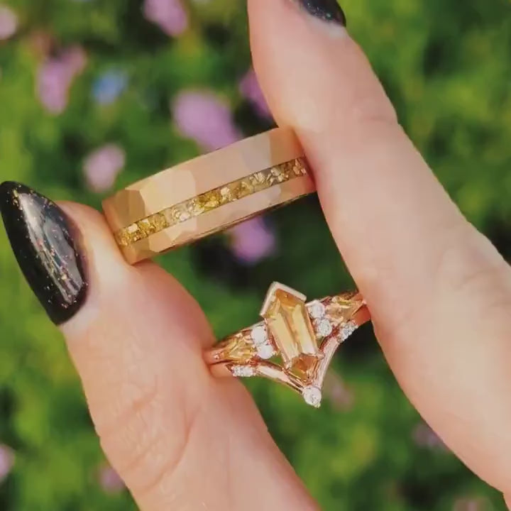 - Sein Ring: Wolfram (14-karätiges Roségold-Vermeil) und Citrin, 8 mm breit
