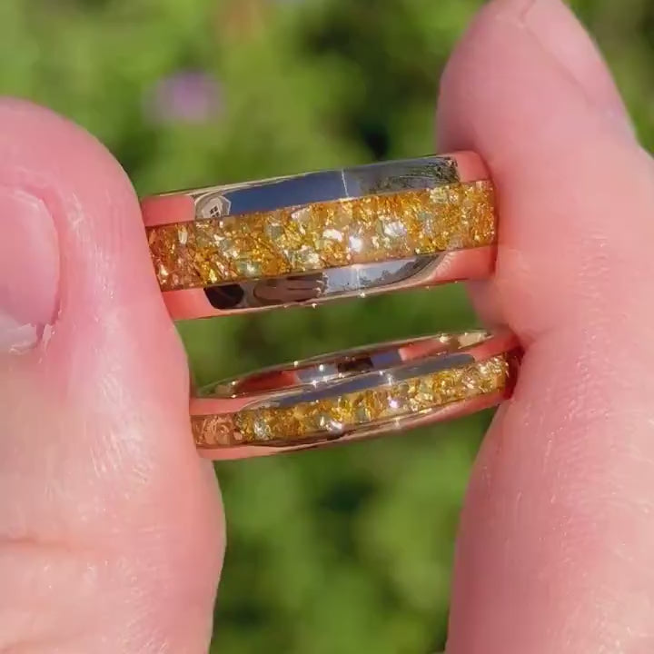 Gipfel - Citrin und Roségold-Wolfram Ringe Set – eine außergewöhnliche Mischung aus lebendiger Wärme und moderner Eleganz. Dieses Paarring-Set zeichnet sich durch das brillante Funkeln des Citrins aus, ergänzt durch den satten Reiz von Wolfram in Roségold, und symbolisiert den Höhepunkt Ihrer gemeinsamen Reise und die strahlende Freude Ihrer Liebe.