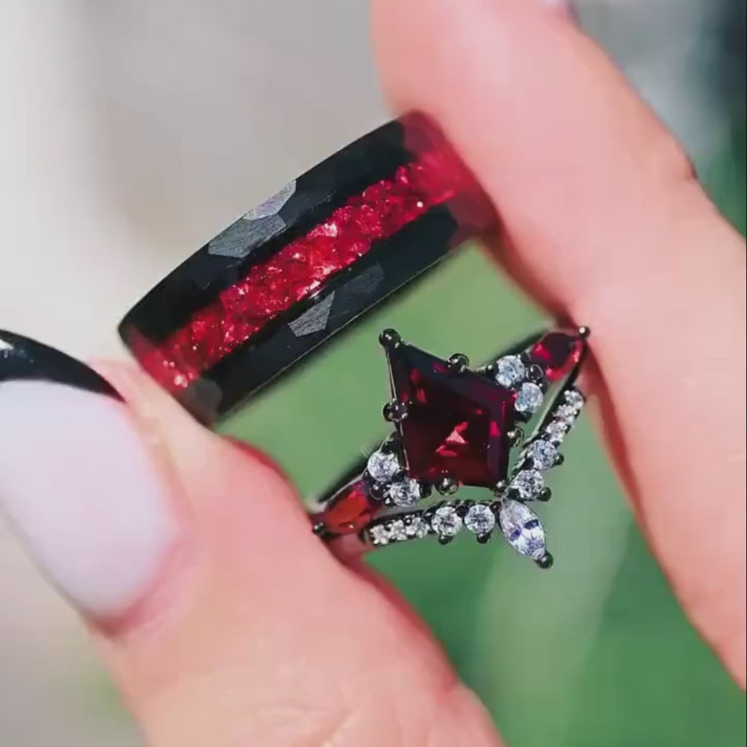 - Material: 925 Sterling Silber, Simulierte Diamanten (Cubic Zirconia) und Roten Garnet, 1,6mm breit