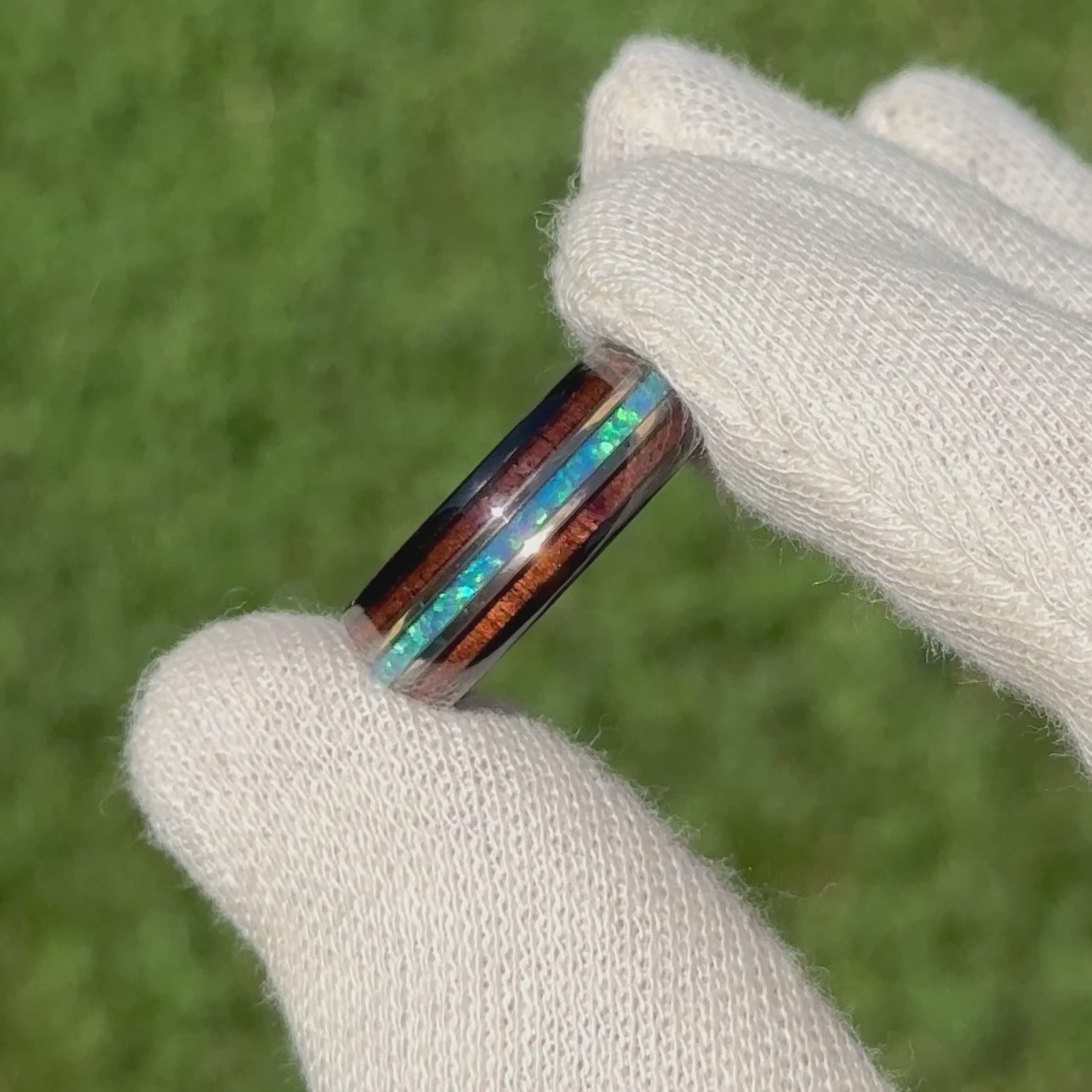 - Material : Wolfram, hawaiianisches Koa-Holz und Opal-Inlay