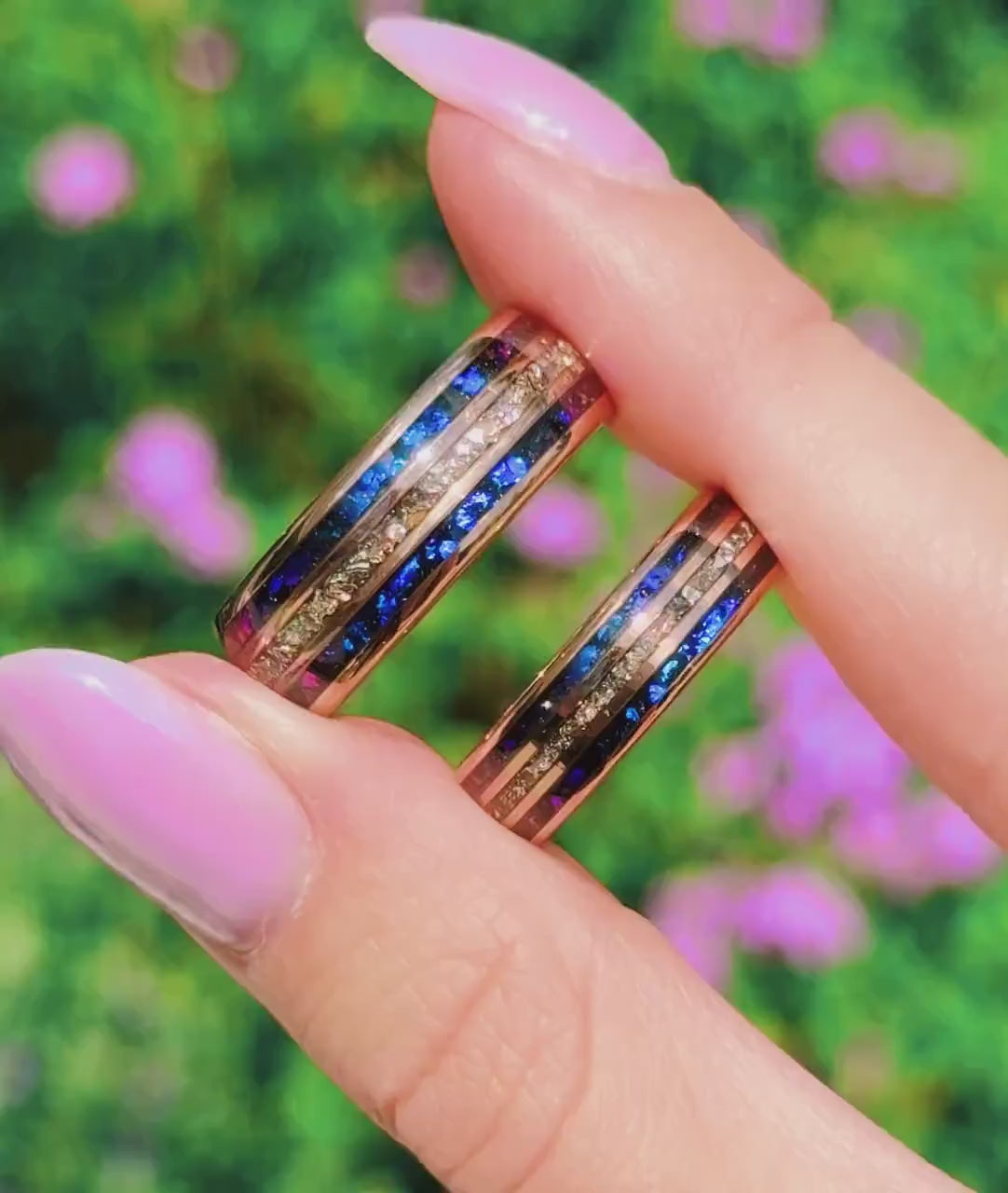 Das Leuchtende – Orionnebel und zerstoßener Diamant – eine strahlende Mischung aus himmlischer Schönheit und zeitloser Eleganz. Dieses Ringset für Paare bietet den fesselnden Reiz des Orionnebels gepaart mit dem Funkeln zerstoßener Diamanten und symbolisiert so die brillante und dauerhafte Natur Ihrer Liebe.