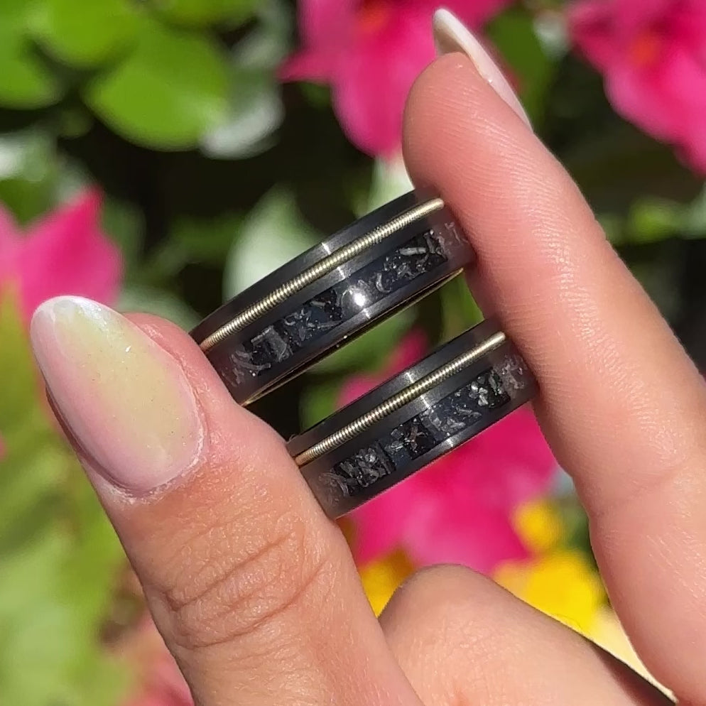 Jeder Ring ist aus robustem Wolfram geschmiedet und verfügt über ein einzigartiges Inlay-Design, das perfekt auf die anderen Ringe abgestimmt ist.