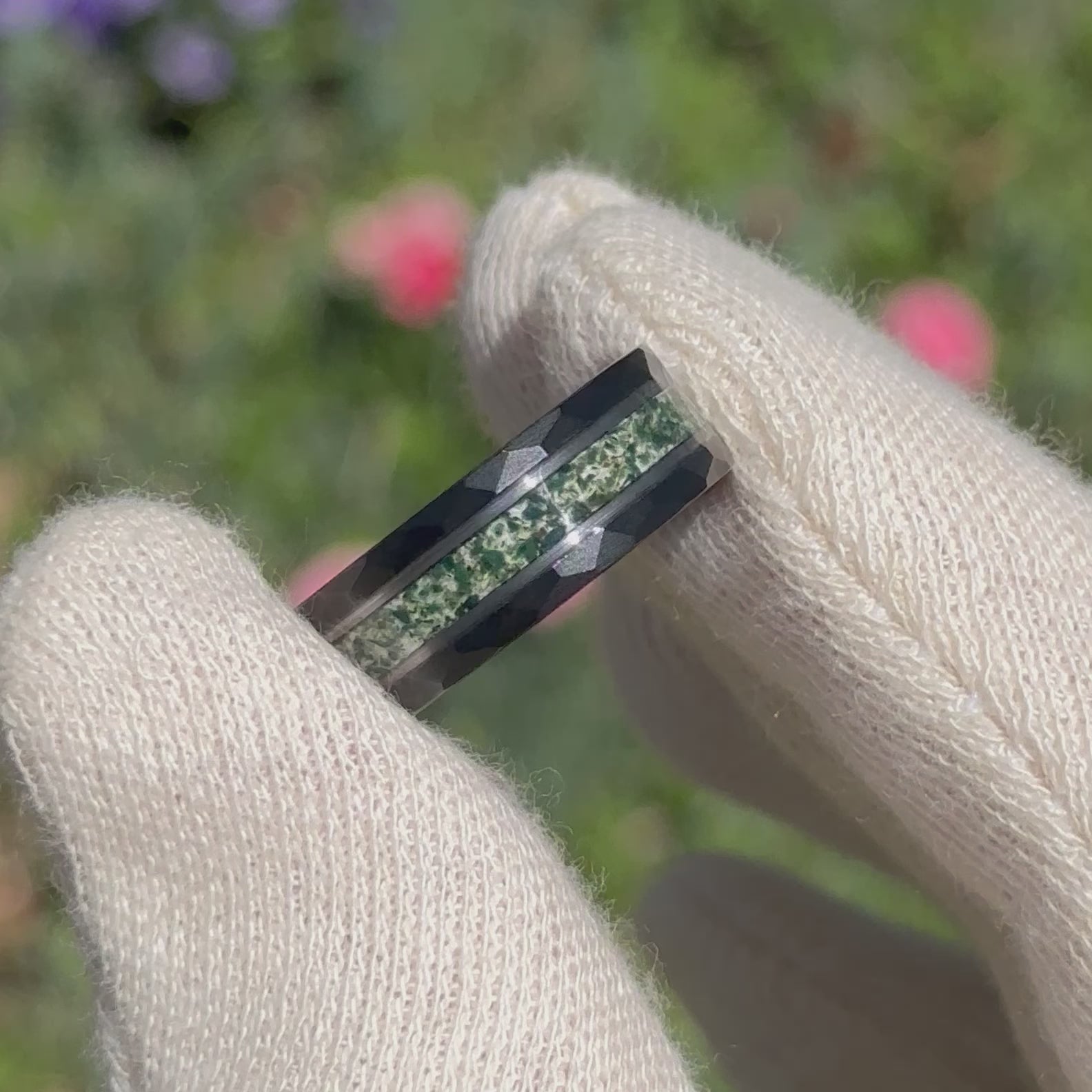 - Material : Wolframkarbid und grüner Moosachat